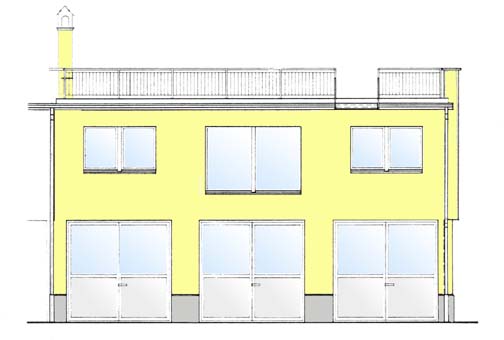 Im Erdgeschoss ist eine Werkstatt mit einer Fläche von 77 m2 mit 2 grossen Toren und eine Garage, die gleichzeitig als Zugang zum Obergeschoss dient.